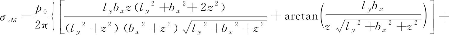 矩形面积均布载荷作用下回填体附加应力计算利用式(1)进行积分求解,如图4所示,计算矩形面积均布载荷p0作用下的附加应力如式(2)所示: