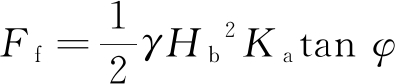 根据土力学理论,摩阻力Ff由被动土压力P乘以摩擦因数计算,被动土压力按如图8所示的三角形面积计算。