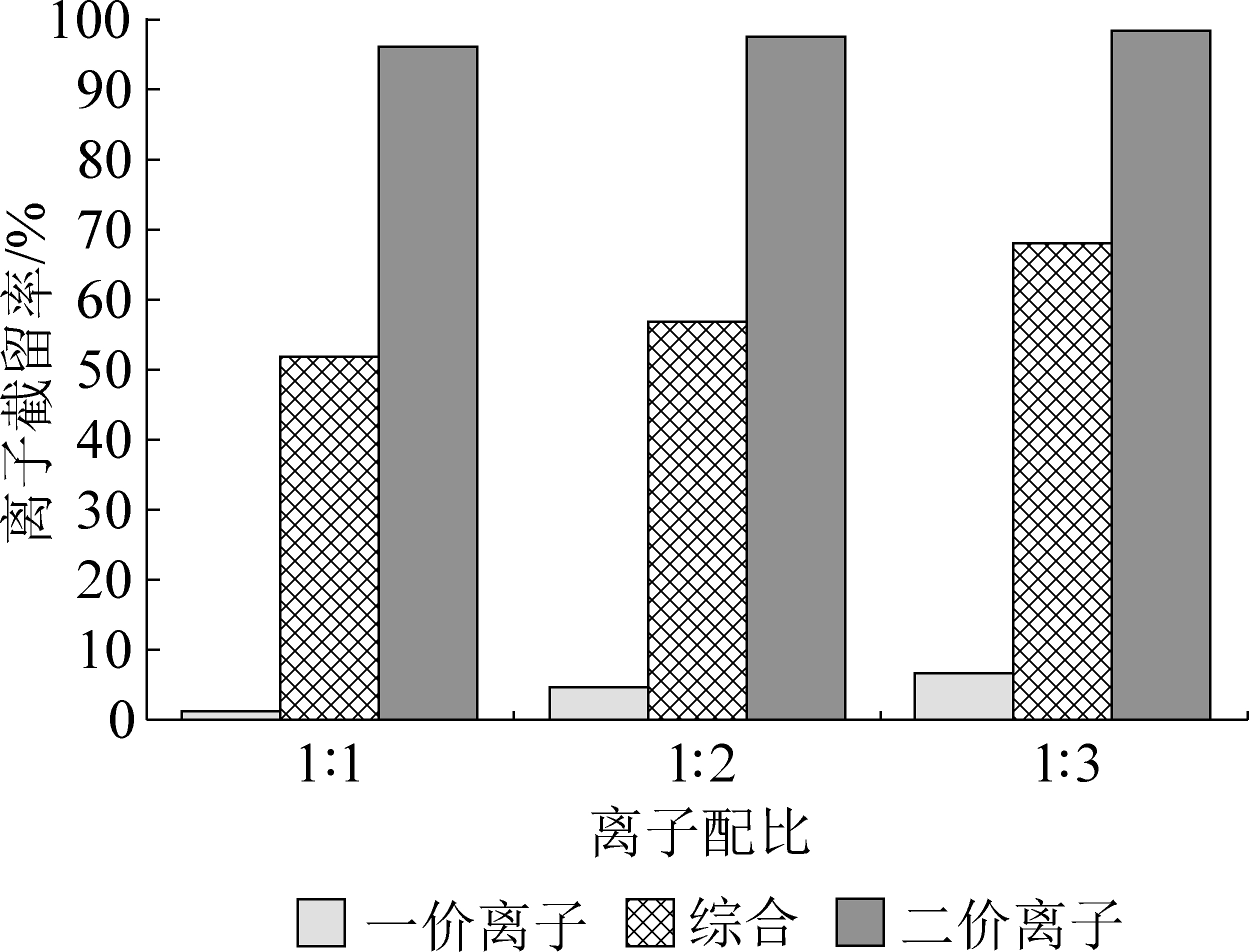 Table 2 Ion selective retention result of tested NF membrane when influent concentration is 3 000 mg/L and mass ratio of NaCl/Na2SO4 with 1 ∶1