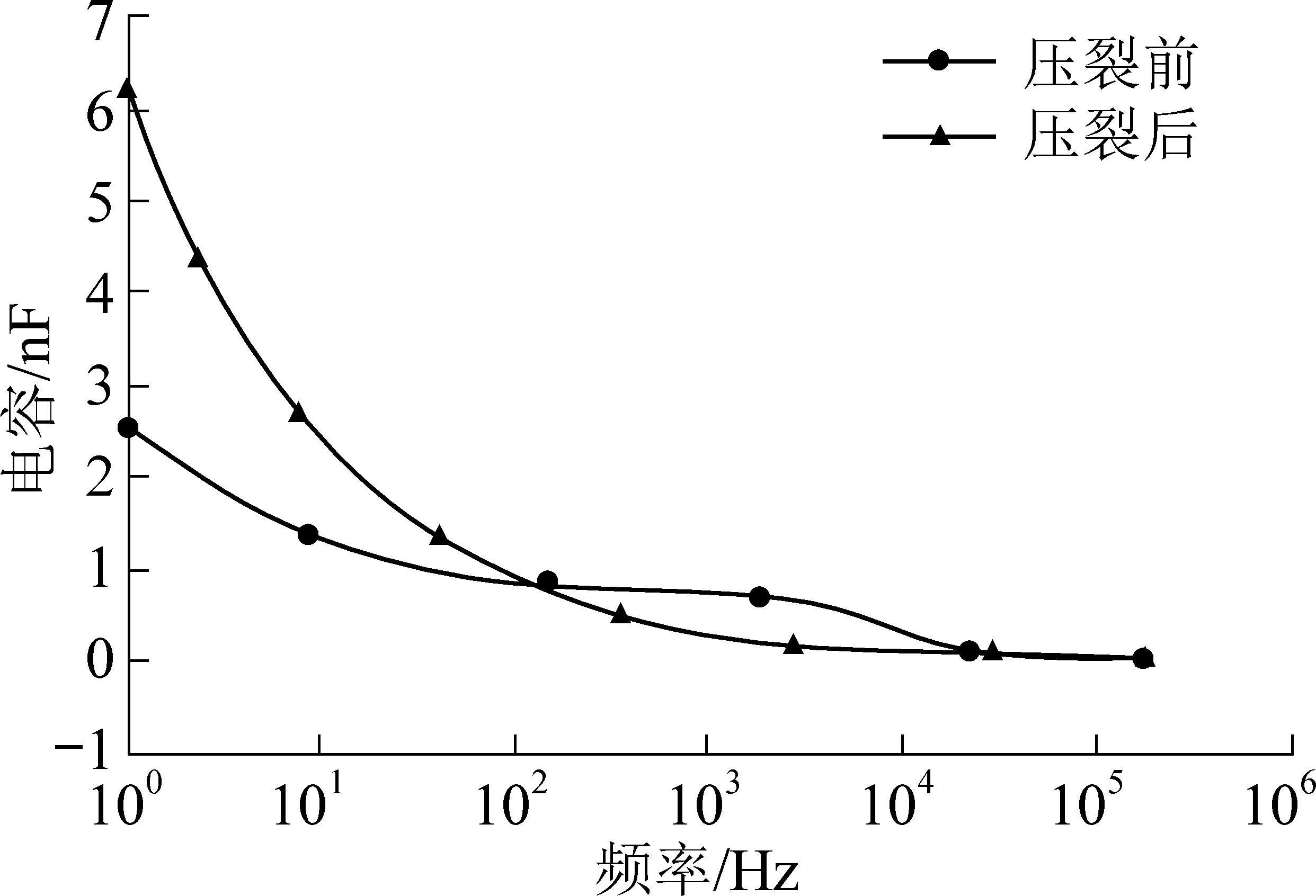 Fig.5 Dispersioncurves of capacitance before and after fracturing