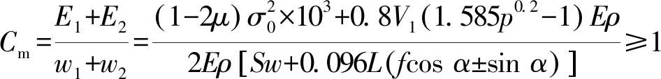 根据突出能量的耗散关系,忽略煤体发声发热等形式的能量耗散w3和周围岩体做功E2影响,引入Cm参数指标来表示突出发动条件: