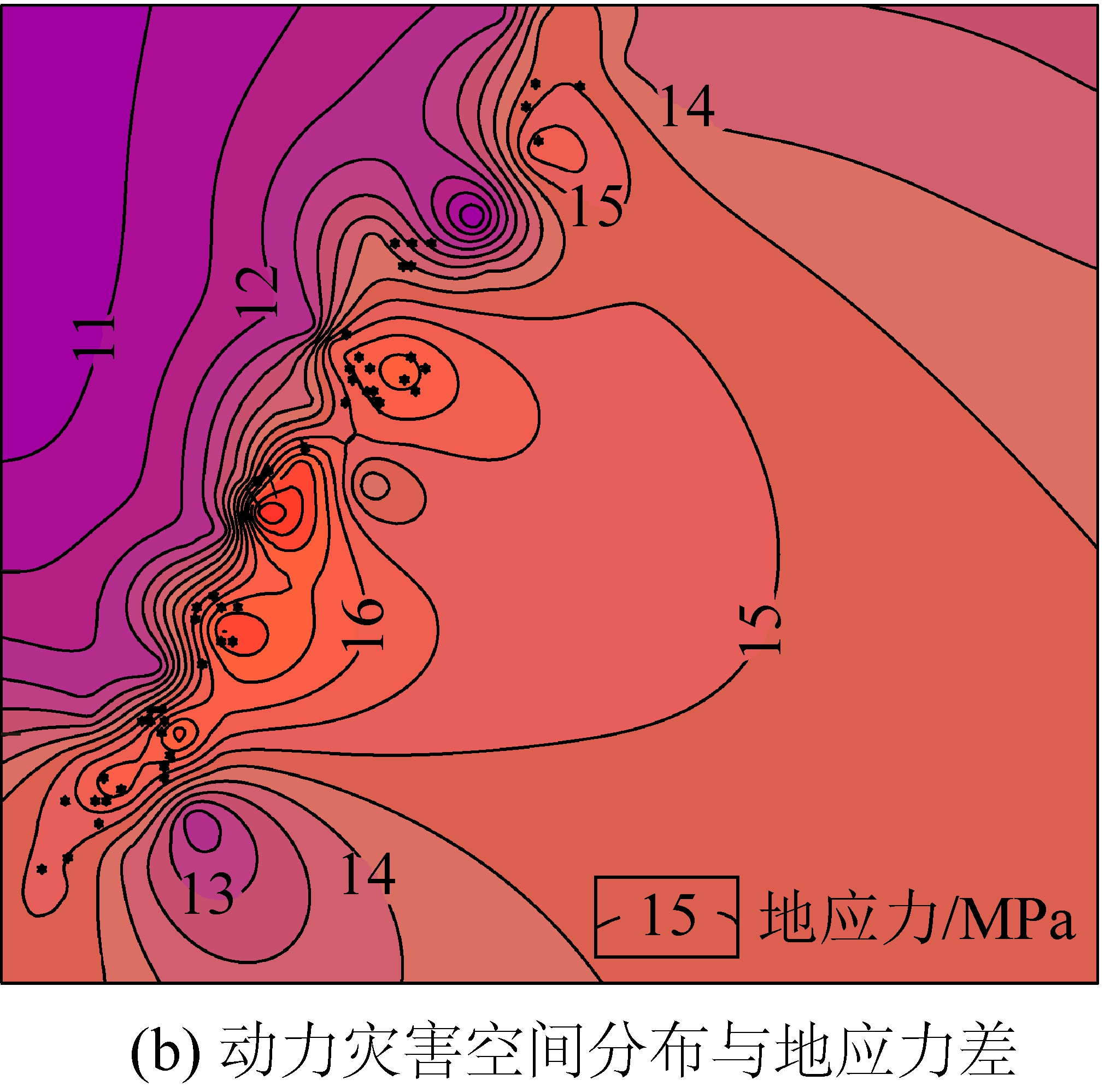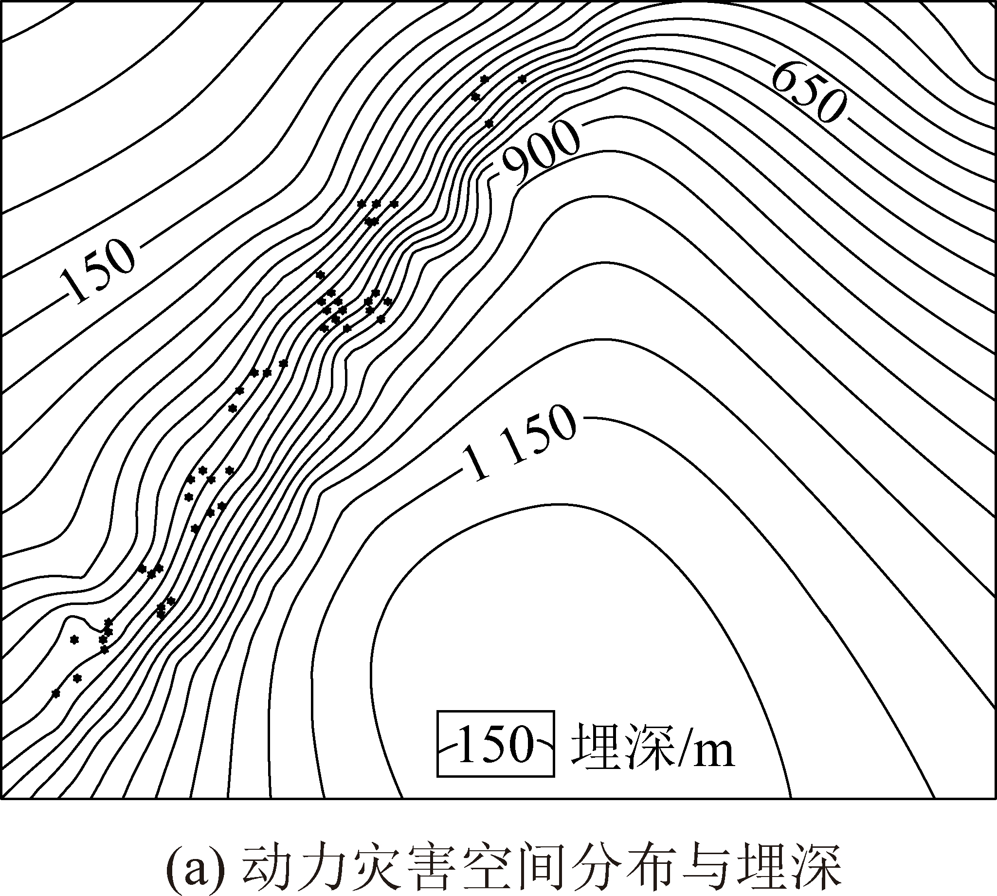 Fig.2 Spatial distribution of dynamic disasters corresponds to distribution of buried depth and geo stress field