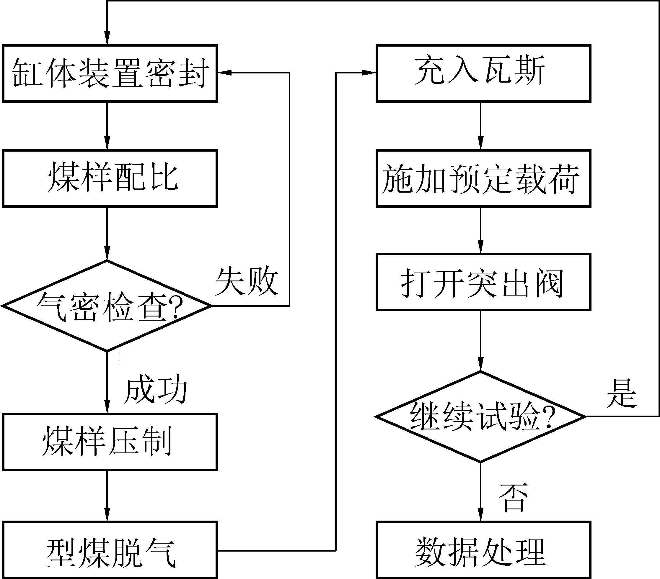 试验煤样取自红阳二矿12号煤层(粒径为0.1 mm),按照煤层底板、煤层和煤层顶板空间顺序对应分层将煤样压制成型,每次加载时间为30 min。试验流程如图5所示。