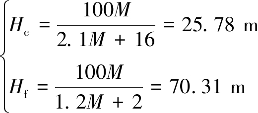 根据《煤矿防治水规定》选取“两带”最大高度的经验公式,计算垮落带Hc、断裂带高度Hf,见式(2)。
