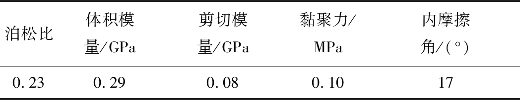 泊松比体积模量/GPa剪切模量/GPa黏聚力/MPa内摩擦角/(°)0.230.290.080.1017