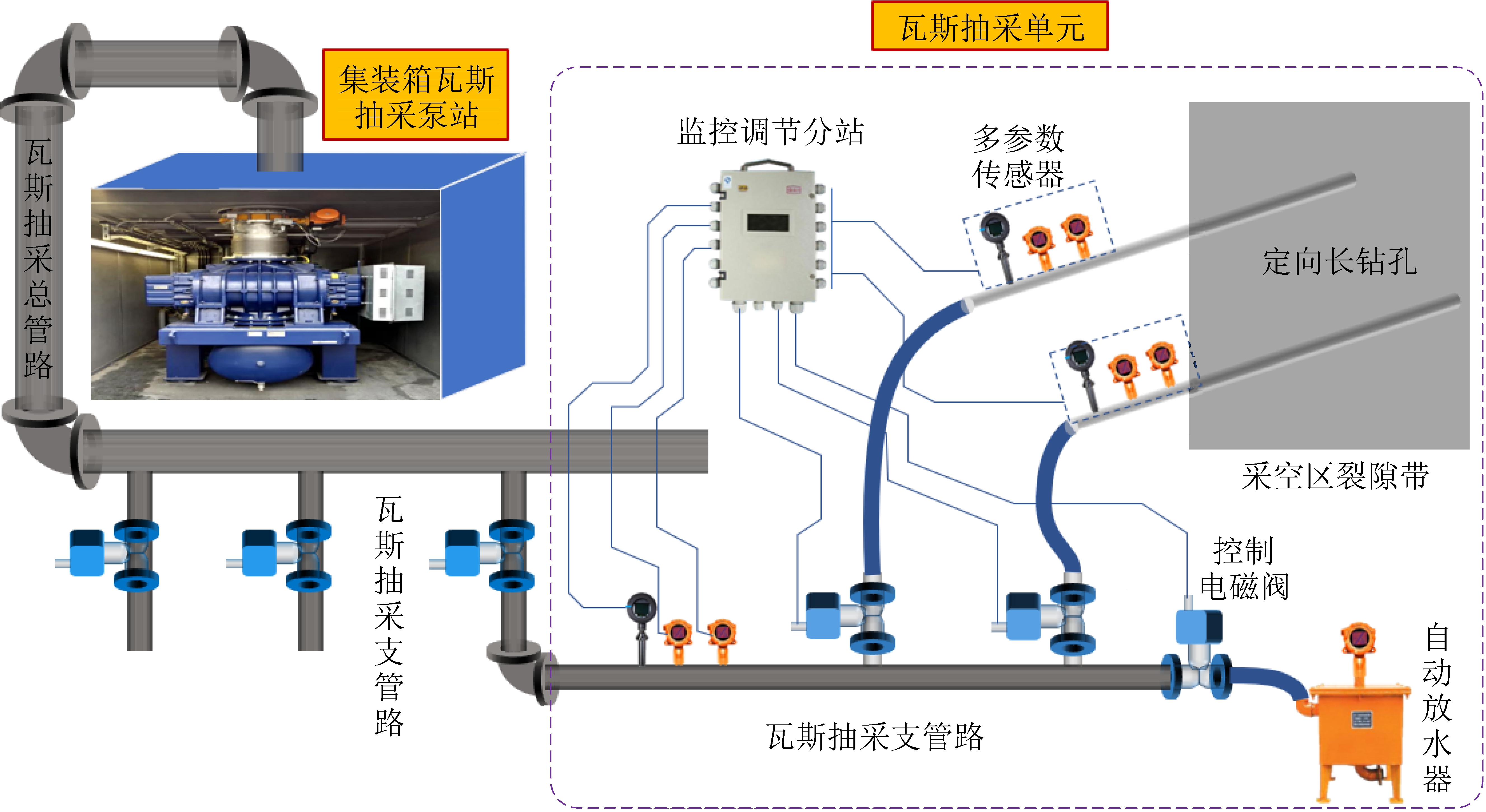 在抽采效果评判及管控方面,融合新型信息技术的瓦斯抽采智能调控技术正成为当下研究热点[35]。基于无线网络实现抽采系统信息感知[36];统计监测抽采管网瓦斯浓度、流量、抽采率等指标,运用多层次分析方法建立卸压瓦斯抽采效果综合评价体系[37];实现了瓦斯抽采管路异常状态的全面诊断分析[38],抽采参数的阀门控制调节[39-40]。