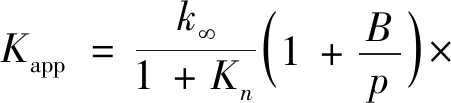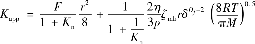 当Kn>>1,气体传输为努森扩散,此时气体分子与孔隙壁面碰撞为主,则考虑壁面粗糙度的理想气体努森扩散[12]可表示为