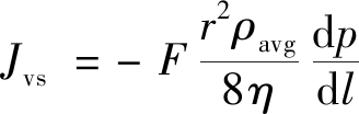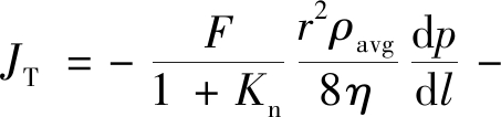 式中:Jvs为气体考虑滑脱效应黏性流量,kg/(m2·s);ρavg为平均密度,kg/m3;l为气体传输方向上的距离,m。