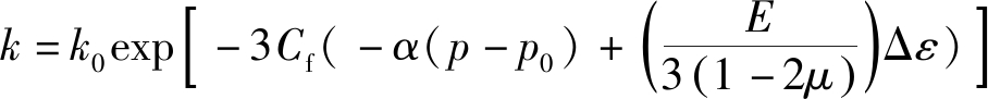 式中:k为渗透率,10-18 m2;k0为初始渗透率10-18 m2;Cf为割理压缩系数,MPa-1。