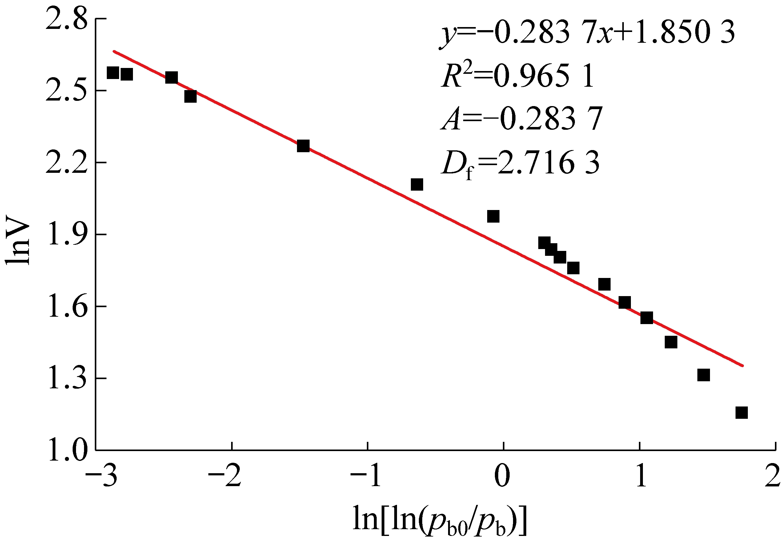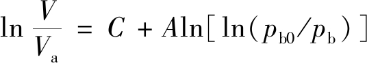 式中:V为平衡压力pb下的吸附气体体积,cm3;Va为单分子层吸附气体体积,cm3;C为常数;A为拟合直线斜率;pb0为气体饱和蒸汽压,MPa;Pb为平衡压力,MPa。