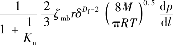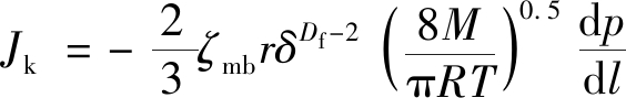 式中:Jk为气体努森扩散流量,kg/(m2·s);ζmb为气体在多孔介质中流动时的修正系数,ζmb=φ/τ,φ为孔隙度,τ为迂曲度;Df为分形维数;δ为分子直径与局部孔隙直径的比值。