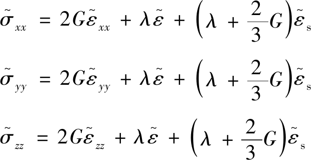 由于剪应力分量不受热收缩和基体收缩的影响,这3种正应力分量的应力应变关系为