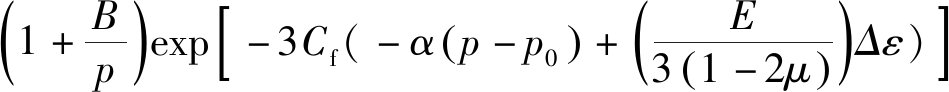 上述页岩表观渗透率模型仅能够描述恒定孔隙条件下气体运移,而在真实储层环境条件下,页岩表观渗透率与应力、吸附变形及流体流态有关。因此,对于页岩表观渗透率中考虑滑脱流动的黏性流分量,采用基于应力应变关系改进的渗透率模型。