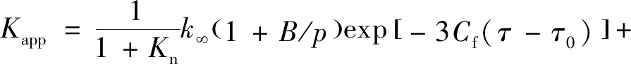 将式(34)代入式(9)得到不同孔隙压力条件下的考虑流体流态和应力耦合作用的页岩表观渗透率模型为