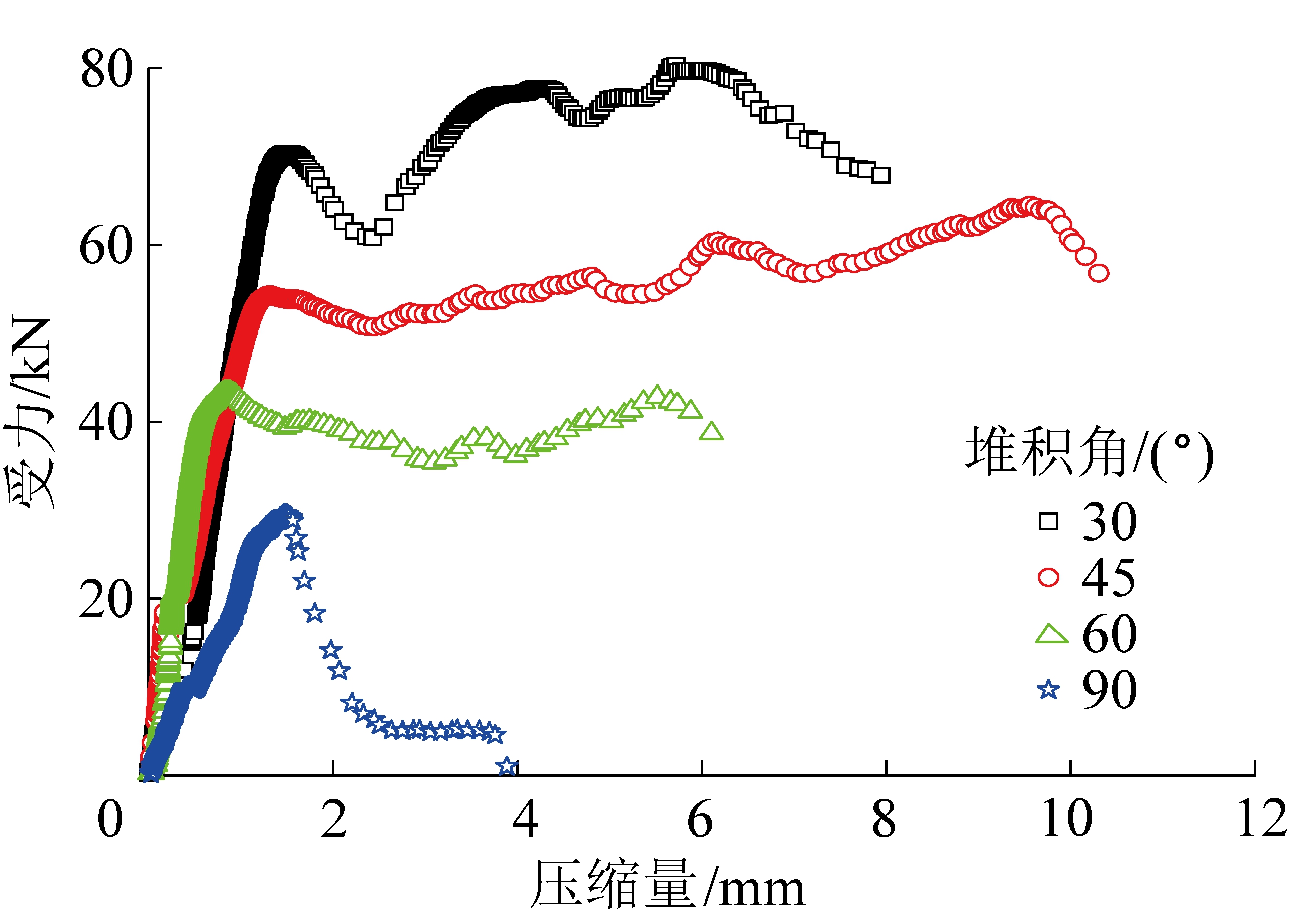 堆积角/(°)30456090试样数量/个12032350392310185承载力/kN111277.5159565.0183596.4205737.0