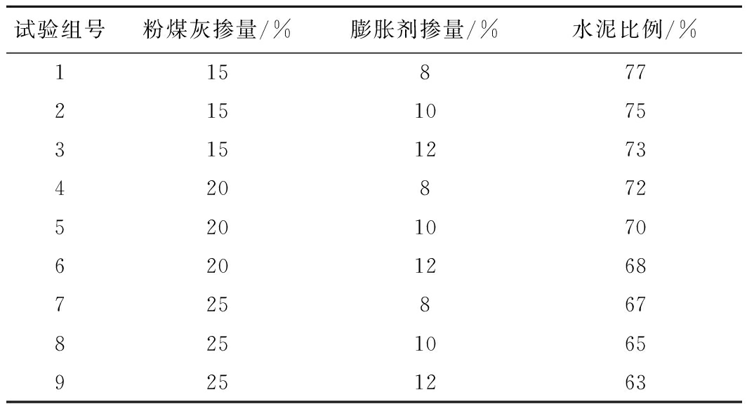 根据表2,可得配合比优化试验的胶凝材料构成比例见表3。