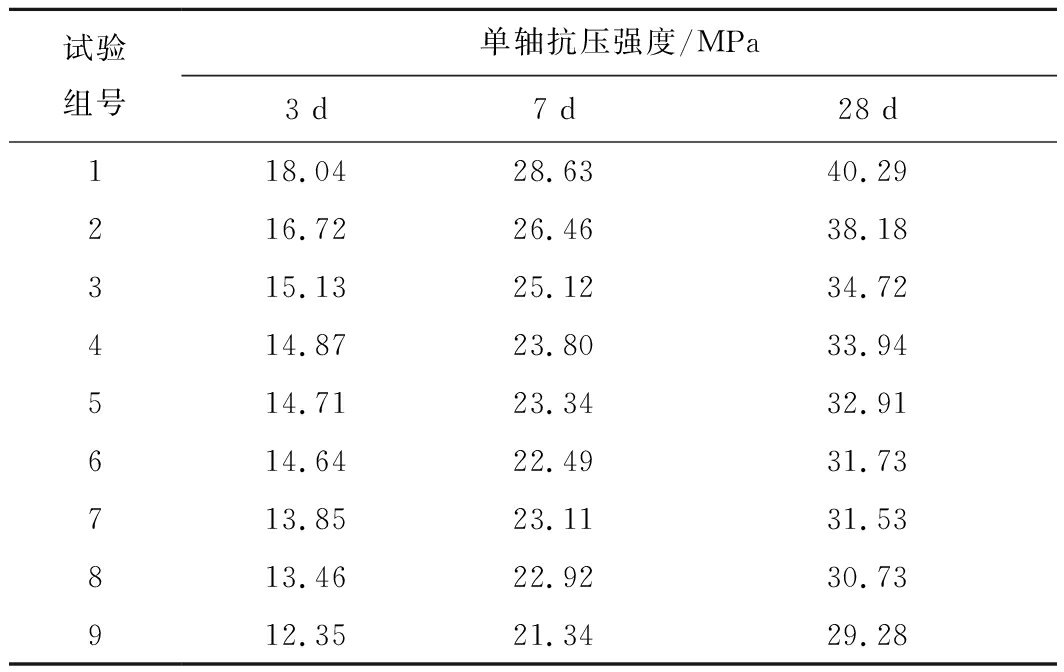 试验组号单轴抗压强度/MPa3 d7 d28 d118.0428.6340.29216.7226.4638.18315.1325.1234.72414.8723.8033.94514.7123.3432.91614.6422.4931.73713.8523.1131.53813.4622.9230.73912.3521.3429.28
