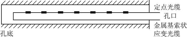 分布式光纤监测孔在每个钻孔内分别安装金属基索状光缆和5 m 金属基索状高强定点感测光缆,两根光缆底部U 型回路熔接串联,具体布设安装方案如图7 所示。 将金属基索状光缆和5 m 金属基索状高强定点感测光缆2 种光纤放入底板施工的钻孔中,并进行水泥浆封堵,与底板岩体较好地耦合在一起。监测钻孔与工作面不同距离的光纤变形参数,通过反演计算获取底板变形破坏程度,具体如图8 所示。