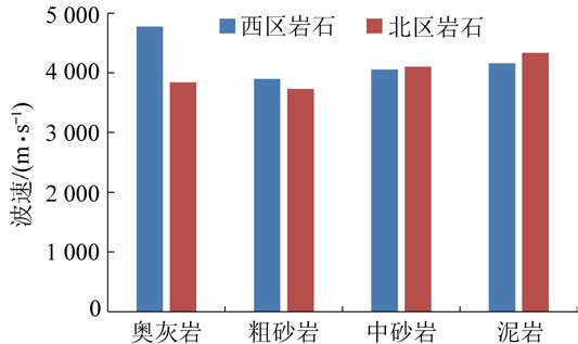 图3 西区和北区岩石波速对比