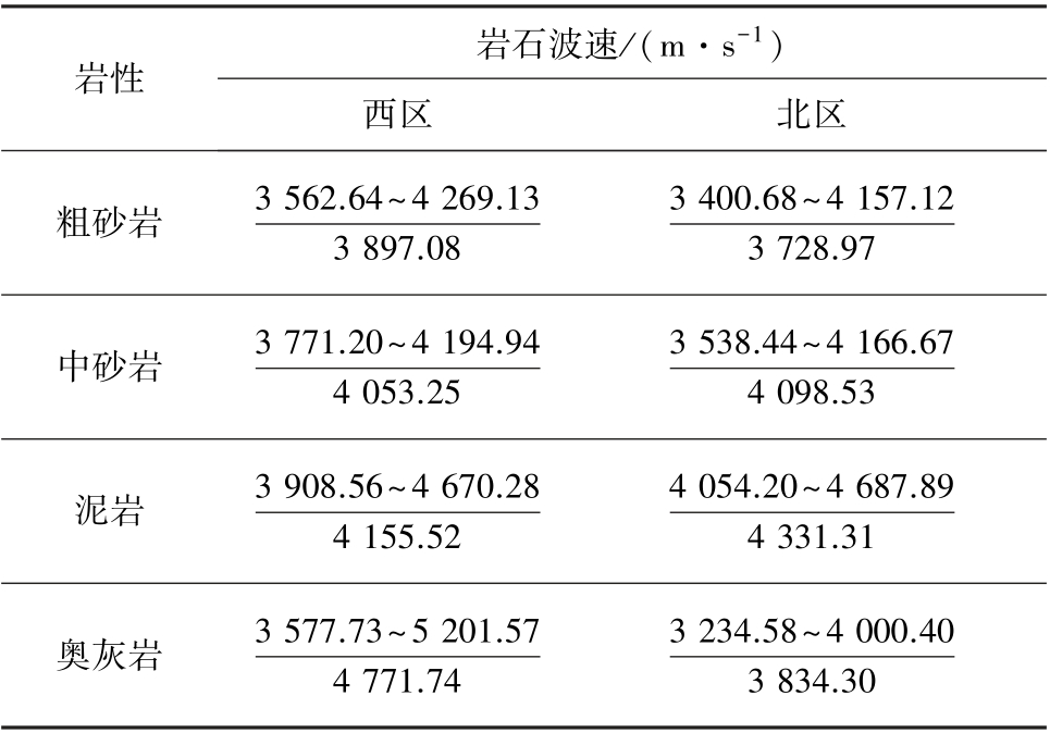 表1 西区和北区的岩石波速统计