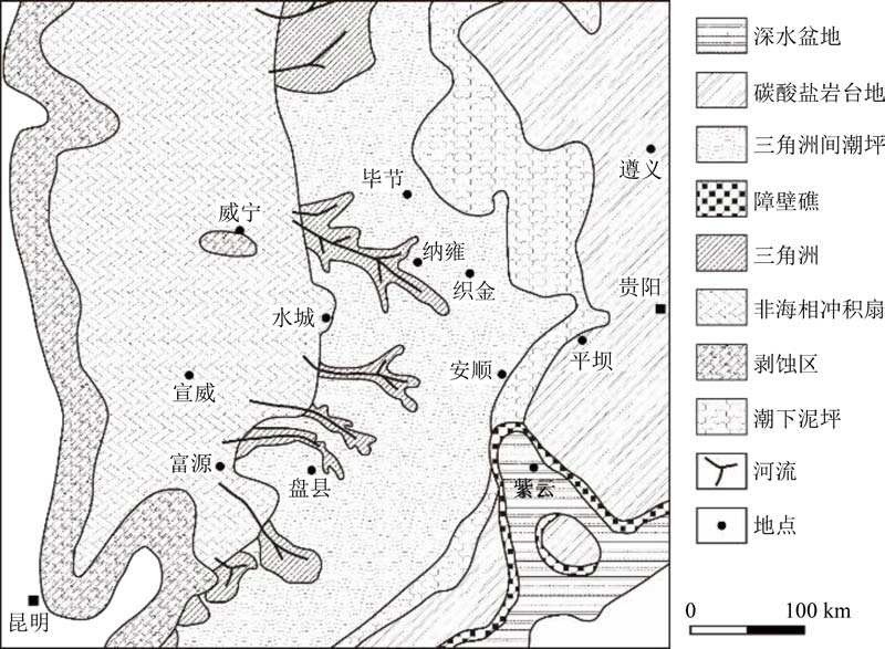 图2 滇东-黔西地区晚二叠世长兴阶沉积古地图图[18]