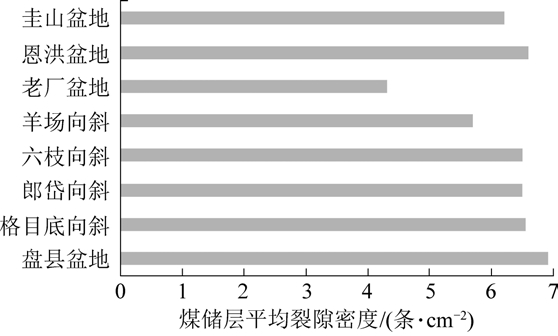 图8 滇东-黔西地区二叠系煤储层平均裂隙密度
