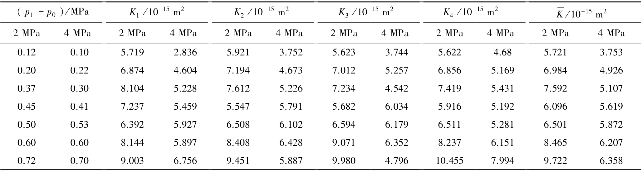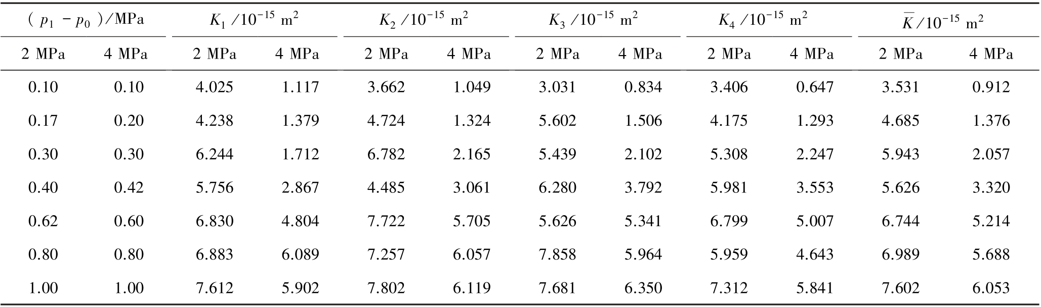 表2 不同围压和水压梯度下岩样S-2 的渗透率测试结果