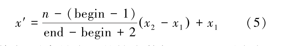 其次,对序号为n 的缺失数据(x′, y′)进行插值运算。 通过查表得到缺失区间的端点begin-1 及end+1,分别记为(x1, y1)和(x2, y2)。 按照式(4)、式(5)线性插值计算(x′, y′)。 若对曲线的平滑程度要求较高,可以选择高次多项式插值或样条插值方法来计算,但需要注意lunger 现象及边缘端点影响。