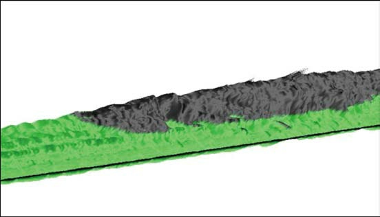 对工作面现场扫描获取的激光的点云采用移动最小二乘法滤波,通过三维渲染重建获得的煤流实时效果如图12 所示。