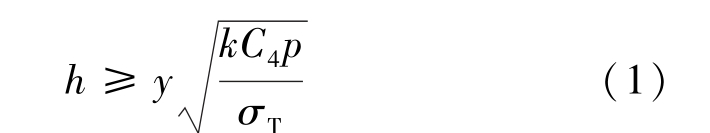 防爆外壳壁厚h 按照公式(1)计算,其中材料选用Q235,安全系数k 取1.5,爆炸压力p 取1 MPa,材料屈服极限σT取235 MPa, y 为矩形短边。 C4为矩形平板系数可查询表得到。 最终计算取得壁厚6 mm。