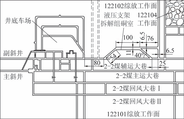 图1 液压支架拆解组装硐室平面布置
