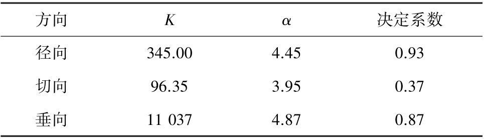 方向 K α 决定系数径向 345.00 4.45 0.93切向 96.35 3.95 0.37垂向 11 037 4.87 0.87
