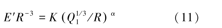 结合萨道夫斯基公式,将爆破振动能量衰减公式简化为: