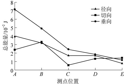 Fig.5 Total energy of blasting vibration signal changing with measuring point