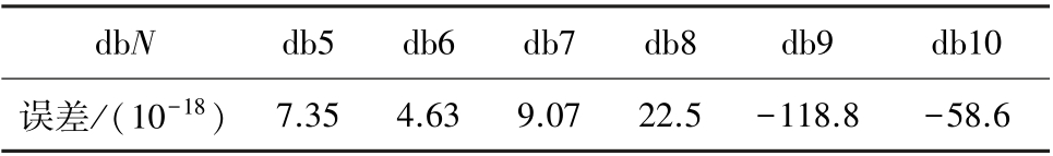 dbN db5 db6 db7 db8 db9 db10误差/(10-18) 7.35 4.63 9.07 22.5-118.8-58.6