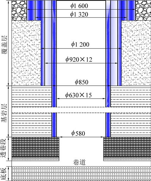 3)三开透巷段施工:钻孔直径580 mm,裸眼完井。