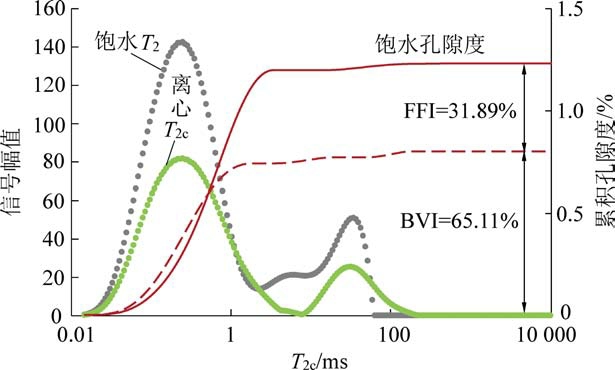 Fig.6 T2c method and bound fluid saturability(Taking sample I-1 as an example)