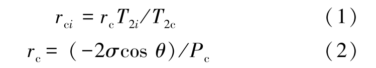T2c值所对应的孔隙半径rc为常数,可根据离心压力Pc求得,则第i 个弛豫时间T2i所对应的孔径rci由式(1)和式(2)[21]可求出。