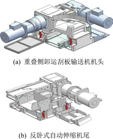 图10 重叠侧卸刮板输送机机头和反卧式自动伸缩机尾