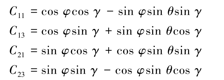 式中:φ 为航向角;θ 为俯仰角; γ 为横滚角。