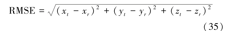 根据式(8)可求得定位终端的坐标,但是在井下复杂的环境中,测量噪声较大,将导致TOA 算法的定位精度较低。 为改善定位精度,采用基于最小均方误差准则的方法提高TOA 算法的估计精度,其均方误差表示为: