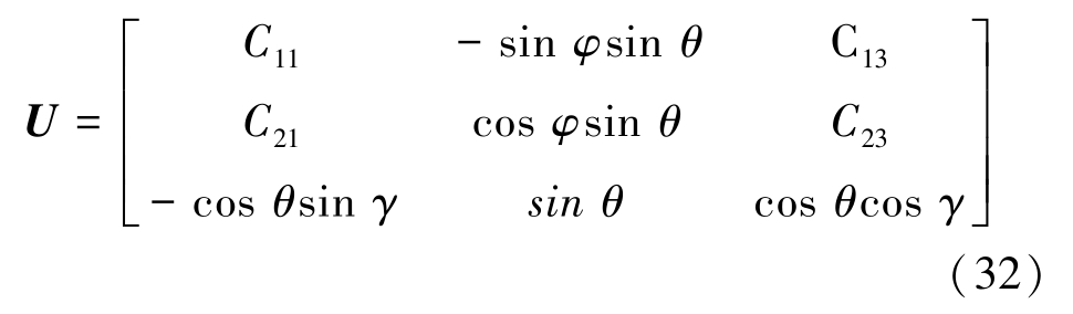 式中,U 为姿态传感器输出的姿态矩阵,如下: