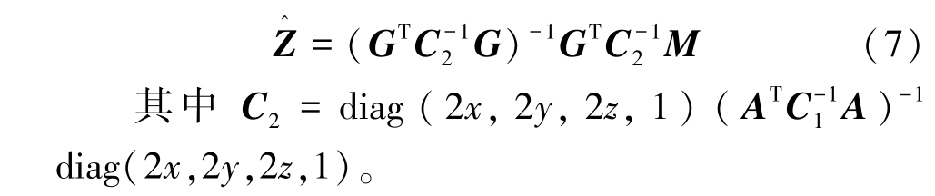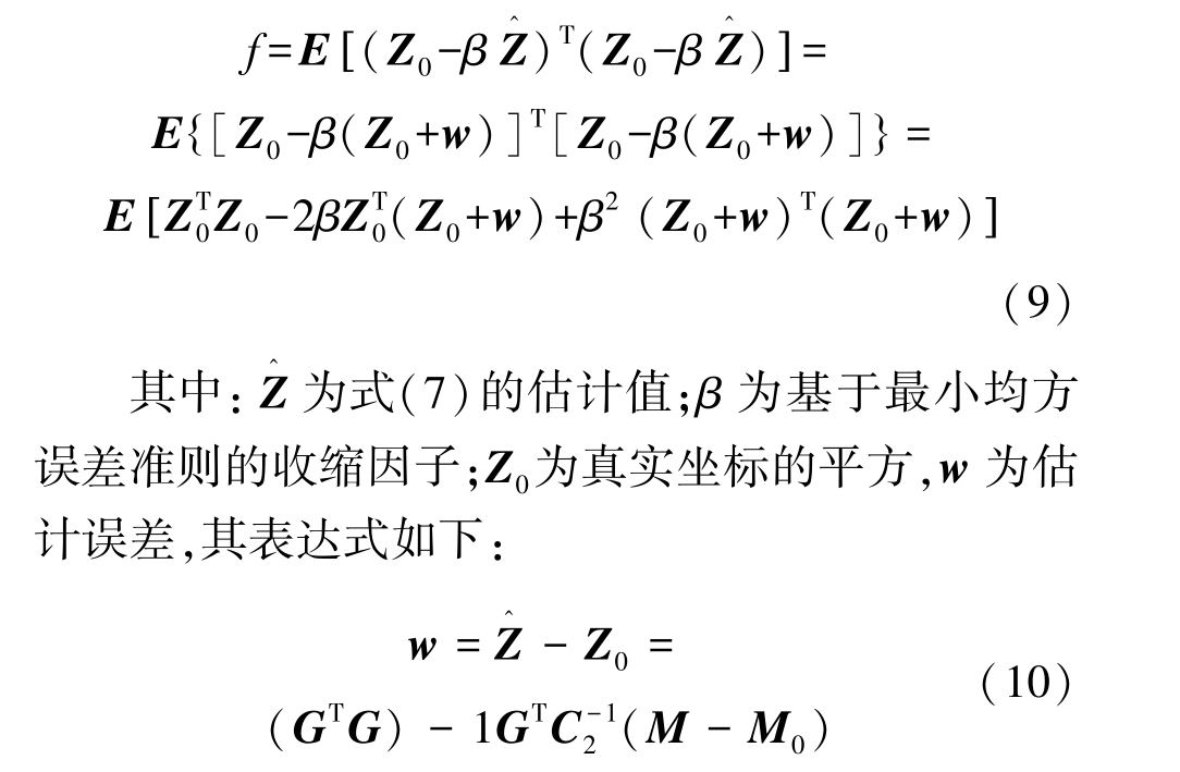 将式(18)和式(20)计算的值代入式(11),解算出收缩因子,则基于MMSEC 收缩估计的定位终端坐标表示为: