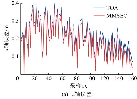 图4 TOA 算法和MMSEC 算法定位误差在3 个坐标轴的分布