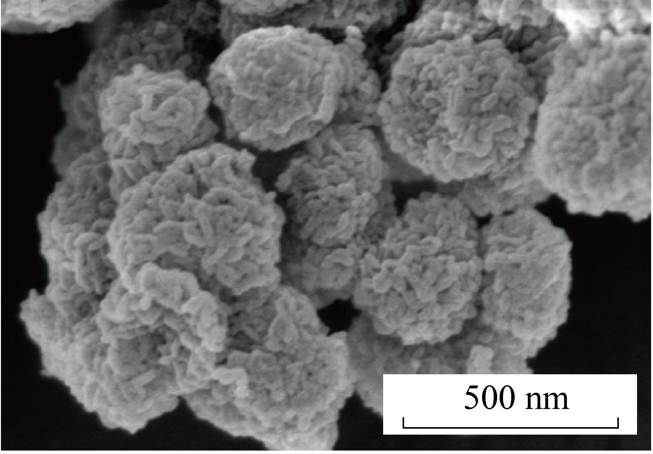 采用SU 8020扫描电子显微镜(SEM)观察铝富马酸的表面微观形貌,其SEM图像如图3所示。可以清楚地看到铝富马酸的直径在300~400 nm,表面具有发达的孔隙结构。同时颗粒会发生团聚,在颗粒间也会形成大量的孔隙。