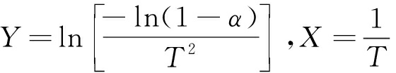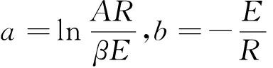 煤与氧气反应为化学一级反应[25-26],可取n=1,则动力学方程可简化为Y=bX+a。