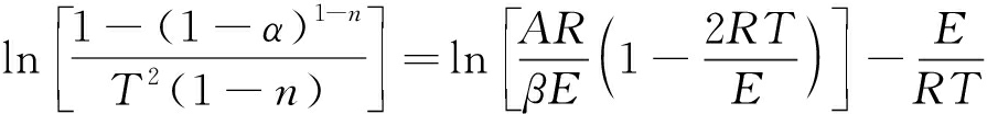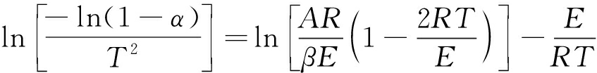 由式(1)、式(2)整理可得Coats-Redfern方程[25]为