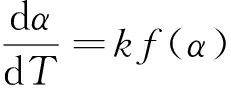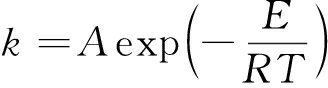 式中:R为气体常数,为8.314 J/(mol·K);A为指前因子,s-1;T为热力学温度,℃;E为活化能,kJ/mol;由于试验采用恒定升温速率,则T=T0+βt,β为升温速率,℃/min。