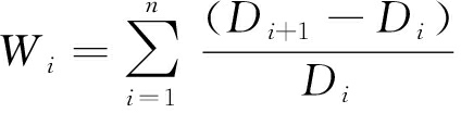 其中:Wi为波动特征,i=1,2,…,n-1;Di为第i个数据,i=1,2,…,n。