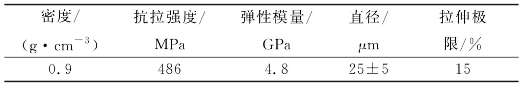 密度/(g·cm-3)抗拉强度/MPa弹性模量/GPa直径/μm拉伸极限/%0.94864.825±515